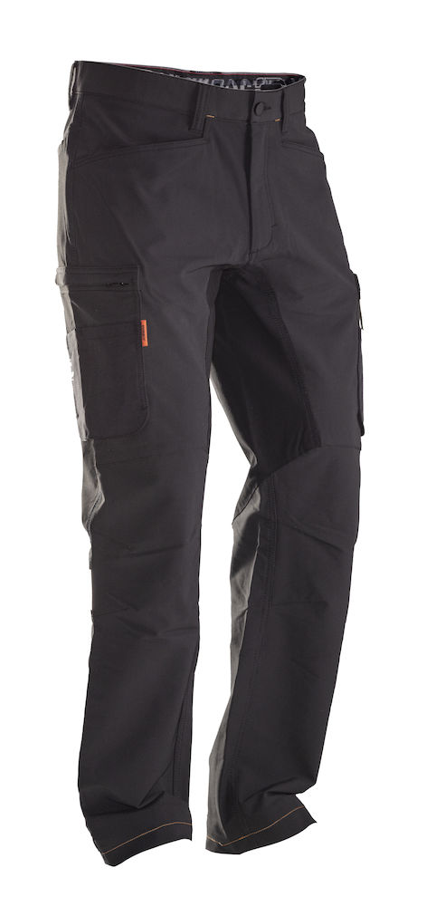 Smidig 4-veis stretch i slitesterkt ripstop-materiale. Forsterket stretch Cordura® i skrittet. Silikonbåndet i bukselinningen holder buksen på plass. Ekstra beltehemper på de største størrelsene. Romslige frontlommer og pene stolpelommer bak. Romslige benlommer med skjult glidelås og mobiltelefonlomme. Forbøyde knær med knebeskyttelseslommer med åpning fra innsiden i to posisjoner. Mesh i knefolden for ventilasjon. Forsterkninger i Cordura® og polyamid.