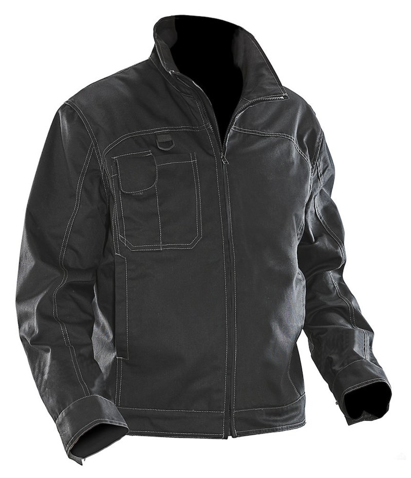 Servicejakke i lettstelt polyester/bomull. Funksjoner som passer de fleste innen service og industri. Høy fargeekthet. Industrivask 85 °C. Brystlomme på høyre side med mobiltelefonlomme og D-ring. Glidelås opp i kragen med innvendig vindklaff. Innsydde lommer foran. Midje og erme reguleres med gummiert trykknapp. Forlenget rygg. Venstre innerlomme med glidelås. Høyre innerlomme med borrelås, dokumentlomme.
