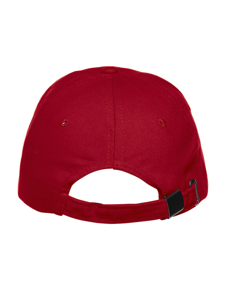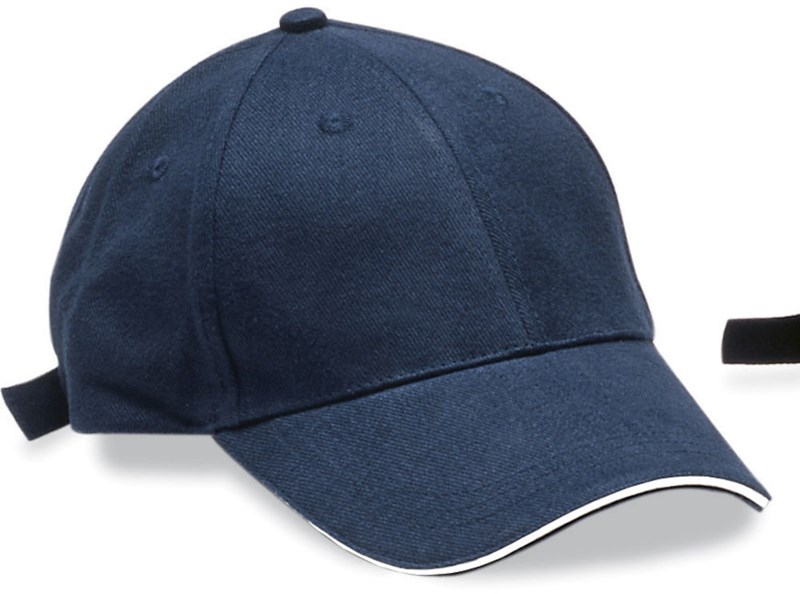 Caps med tynn kontraststripe på skjermkanten og justerbare bånd med messingspenne.