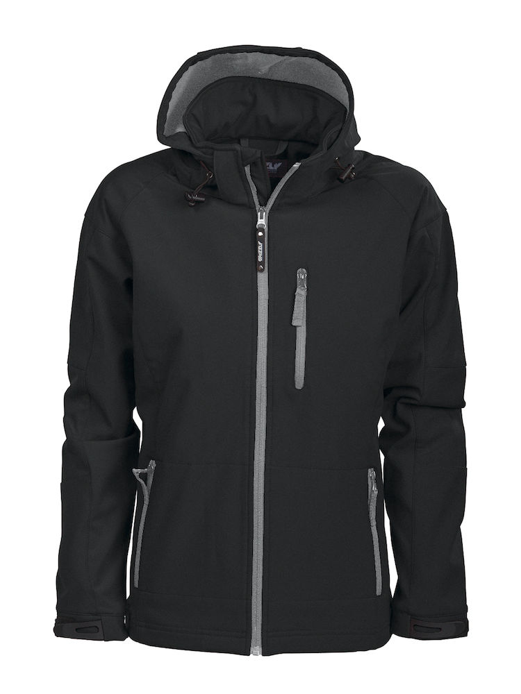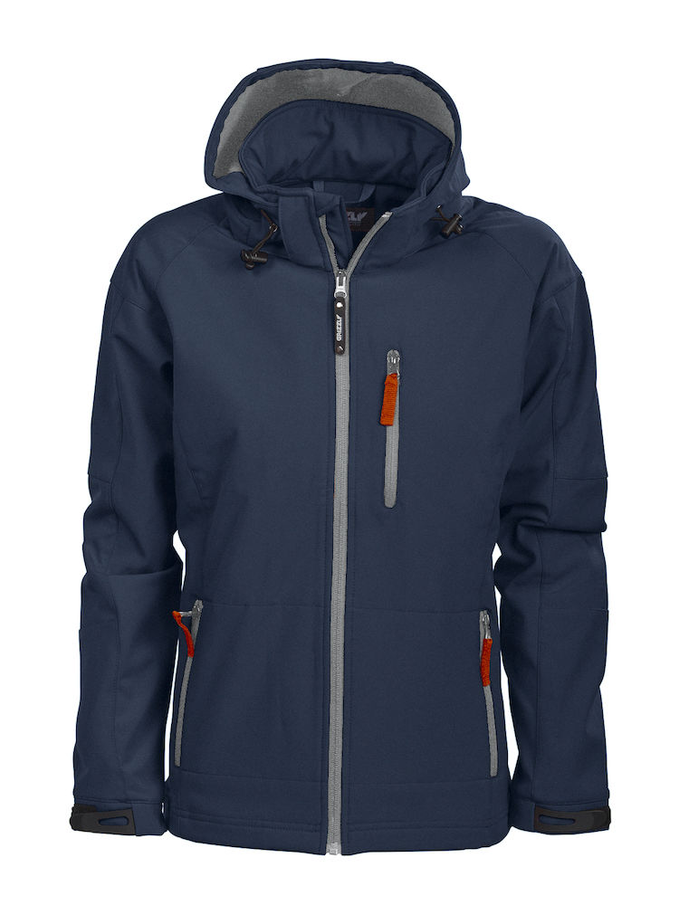 Softshell jakke med kontrastfarget microfleece på innsiden. Vind- og vann-avstøtende (WP3000/MVP2000). Justerbar hette og armavslutning. Elastisk snor i hette og i nederkant. Bryst- og framlomme samt innerlomme.