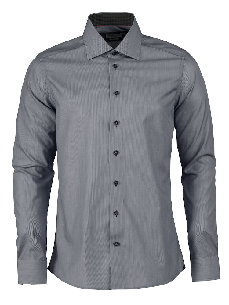 White thin stripes on a blue or grey anthracite base, makes it a stylish new version of the classic striped shirt. The shirt can perfectly match with all colors and patterns, and is an excellent choice if you should add some colors to your standard white & blue wardrobe.