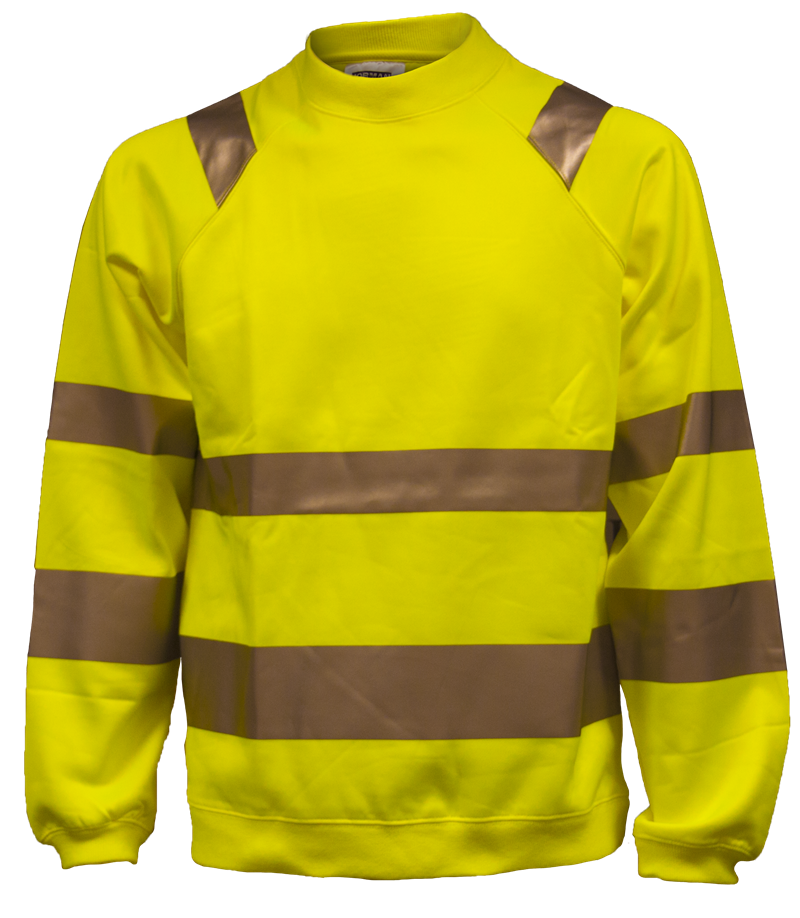 Synlighetsgenser med børstet innside. Rib i nederkant og i armene.Refleks over skuldrer for økt synlighet.
