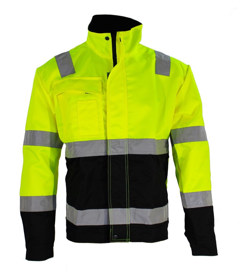 Prisgunstig jakke laget av 65% polyester/ 35 % bomull, 270 gr/m2. YKK vizlon glidelås i front - med klaff over. Håndlommer, 1 brystlomme, ID-kort lomme, 2 pennelommer, justering i erme. Reflekser også over skuldre. ISO20471 kl. 2