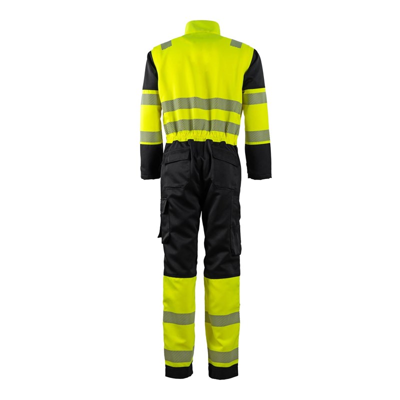 Tøff kjeledress i høy synlighet ISO 20471 klasse 3 laget av 80% polyester, 20% bomull, 240 gr/m2. Spesialvevd metervare som har en ytre overflate av polyester som er både glatt og smussavstøtende, mens innsiden er med myk og komfortabel bomull. Dressen har fold i rygg og strikk i livet for bedre bevegelighet. For økt levetid er det trippel søm på belastede områder og forsterket stoff i knærne.