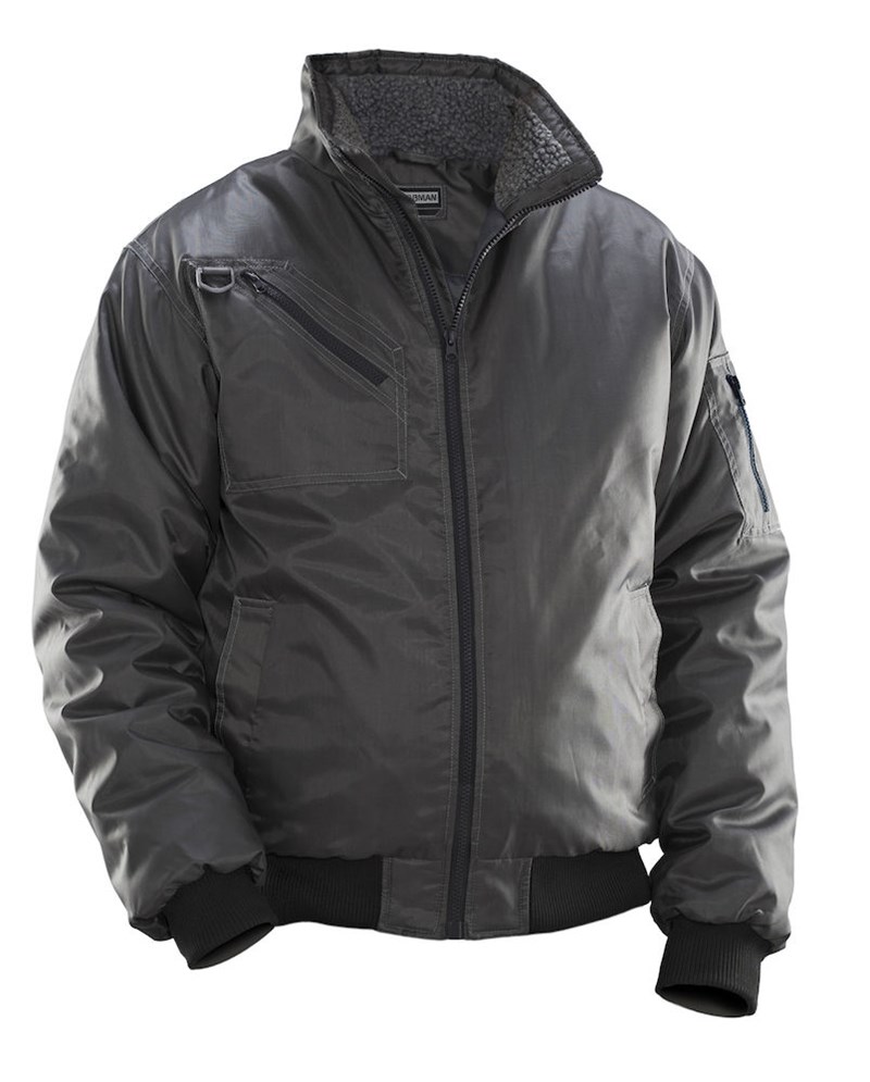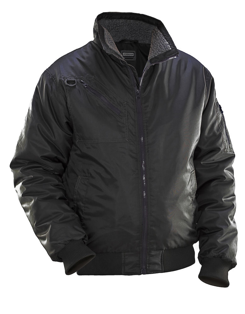 Pilotjakke i slitesterk polyester med smidig quiltfôr. Behagelig teddyfôr i kragen. Brystlommer og armlomme med glidelås, framlommer.Innerlomme med lomme til mobil. D-ring til ID-kortholder.Mansjekk i midjen og armene.